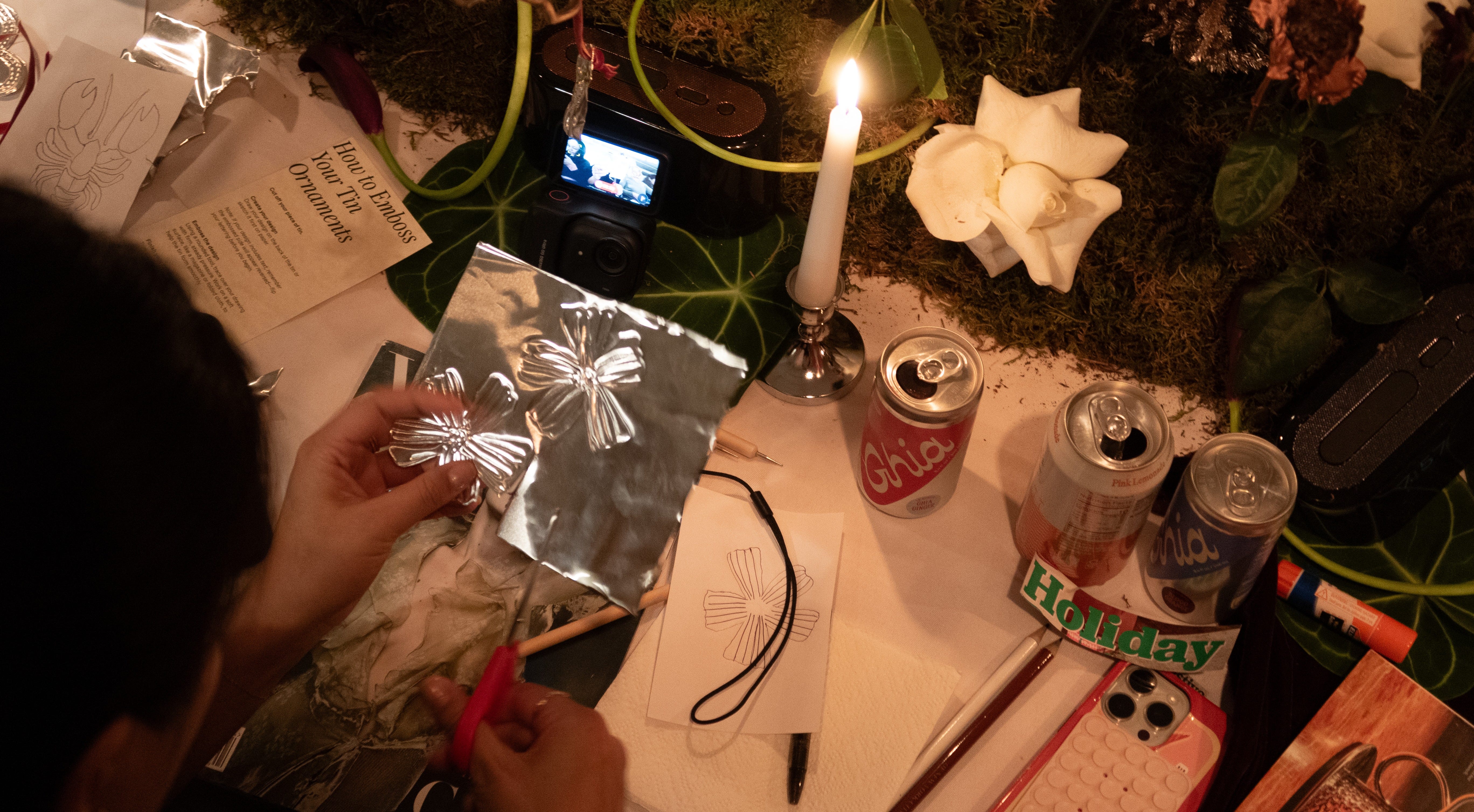 Immersed in the metallic splendor of the evening, embossing tin ornaments naturally became the activity of the night.