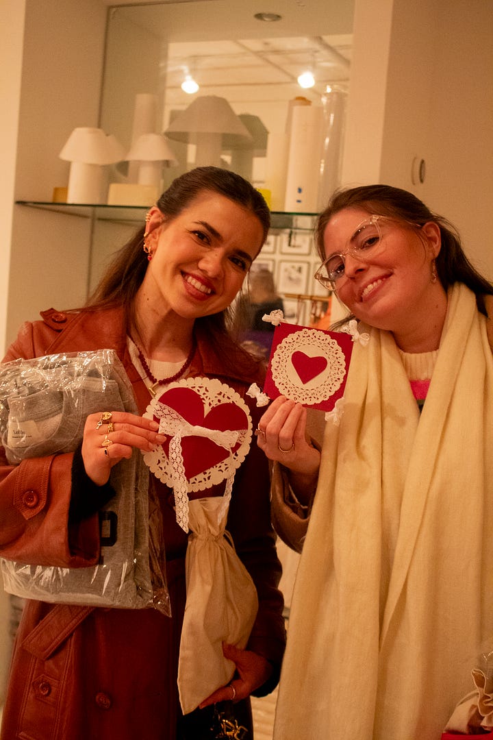 It wouldn’t be a Galentine’s without a little DIY Valentine-making action, so supplied with lace ribbon, classic paper doilies, and some good old-fashioned construction paper, our guests took a moment to make something sweet for someone they love.