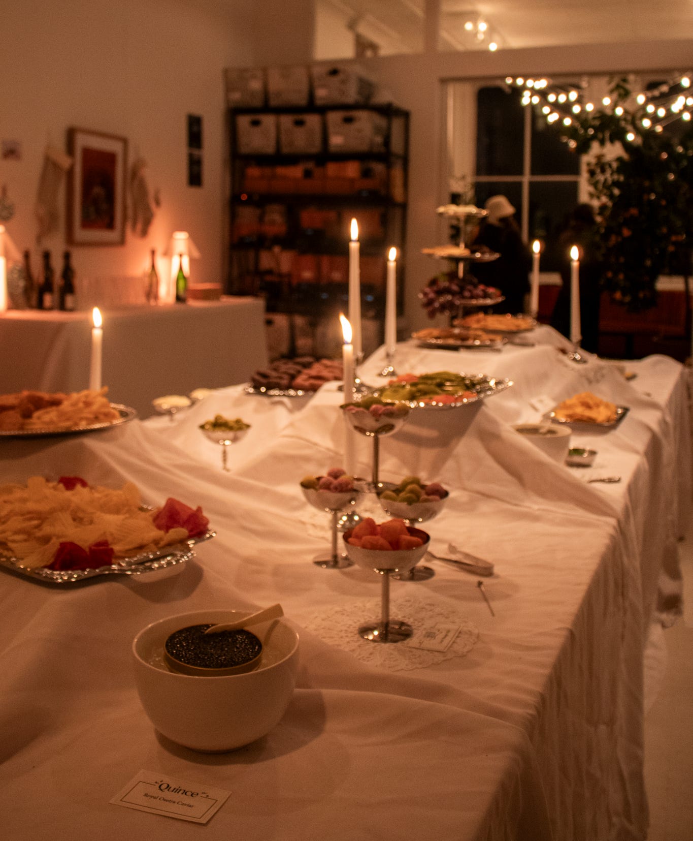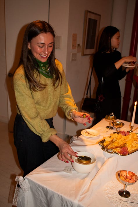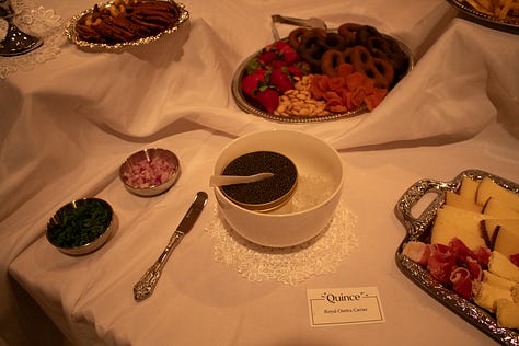 Quince, our hero of the night, completely spoiled us by sending over $6,000 worth of their new caviar. It paired perfectly with our other superstar sponsor, The Good Crisp Company, who hooked us up with my favorite potato chips. I’ve seriously been eating the jalapeño ones since they arrived at the office.