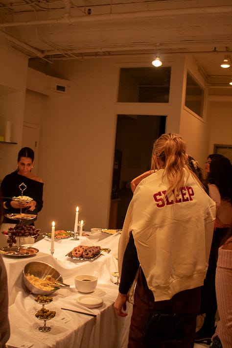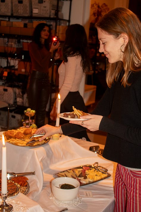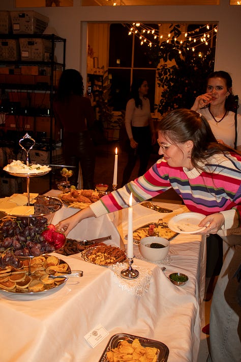 We grazed, we munched, we gushed about our favorite bites, and spilled stories from the week, lingering around the table by candlelight.